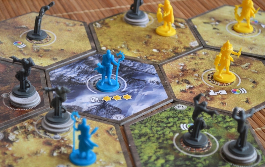 Кстати о правилах, недавно открыл для себя два момента, по которым играли неправильно, может, кому-нибудь пригодится. Первый: на руины только что открытых гексов кладётся по два бонусных жетончика (я думал, что, как на домашний, по одному, и только на центральный три). Второй: технология, которая позволяет тянуть кубик из мешка каждый раз, когда получаешь кристалл, работает только при генерации кристалла действием на планшете/карте (т.е. за убийство фигурки оппонента кубик не тянется).
