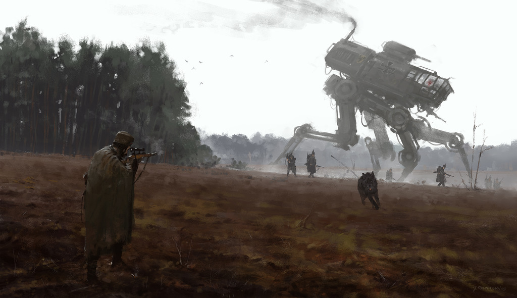 Что заинтересовало? Во-первых, то, что обещают неподдельное ощущение развития через механику улучшения действий, наем новых отрядов, строительство и расширение границ. Мол, получится этакая гремучая смесь из экономики и менеджмента ресурсов Агриколы и активных стычек а-ля Кемет. Во-вторых, я просто без ума от мира, выдуманного польским художником Jakub Rozalski, с его шикарными иллюстрациями сельских пейзажей с механическими громадинами на заднем плане. Обнадёживают и последние новости, где дизайнер представил изумительные миниатюры лидеров фракций.