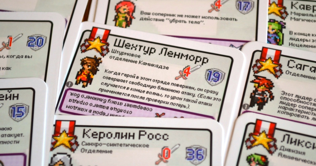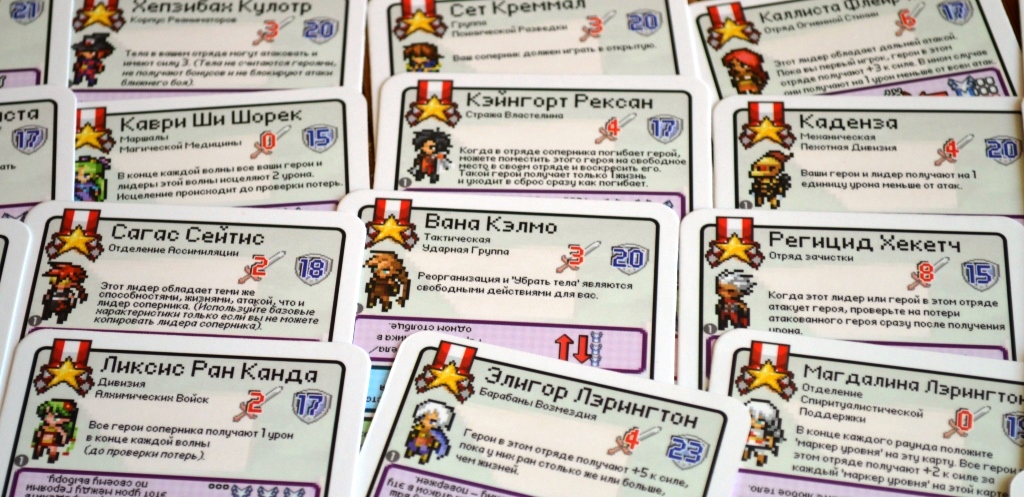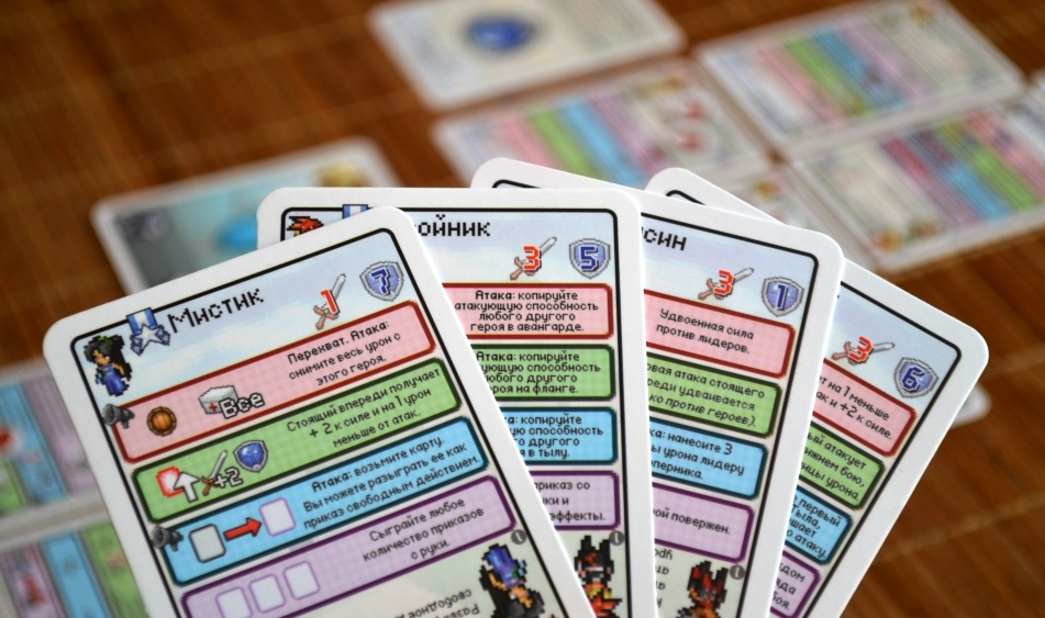 Второе – свойства. Оригинальность заключается в том, что каждая карта является одновременно и лидером, и героем, и приказом.