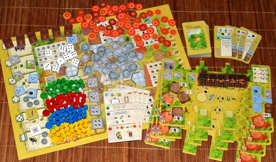 La Granja – игра довольно комплексная и специфическая. Несмотря на тематику, развитие в ней не самое главное. В первую очередь – это своеобразная гонка на доставку товаров, в которой игроку поможет не только обустройство собственной фермы, но и умелая купля/продажа, а также своевременное преобразование одних ресурсов в другие. Процесс подразумевает тщательное планирование с оглядкой на непредсказуемость кубиков дохода и пришедших на руку карт.