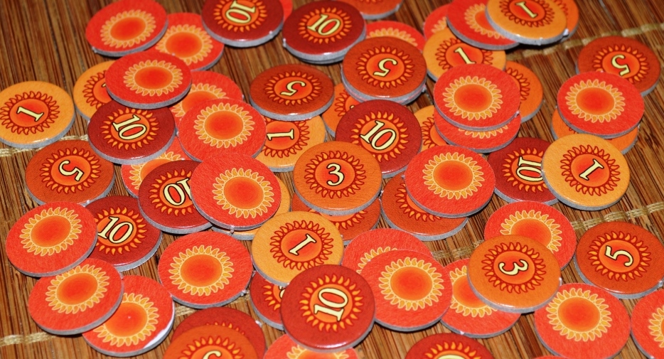 С каждым раундом кровля дорожает в независимости от плюшек, а всё потому, что с каждым новым жетоном растёт и награда в очках. Кстати, жетончики кровли ещё и являются таймером партии. Текущий раунд можно легко определить по самой правой пустующей стопке.