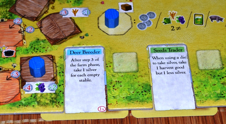 В первой фазе игроки решают, как распорядиться картами ферм. Их можно подложить под одну из четырёх сторон своего планшета и получить соответствующие плюшки. Сыграть можно одну карту (в первом раунде две).