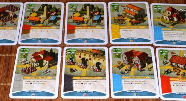 Проблем с добором карт не было: помогала в этом башня, сделка и фракционная карта на добор двух римских. Если бы играли с оговоренной колодой в 30 карт, то, вероятно, смог бы построить ещё парочку администраций и штаб-квартиру.
