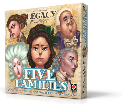 Вот и дождался я дополнения к Legacy: The Testament of Duke de Crecy! Долго издатель кормил поклонников этой замечательной игры обещаниями, а потом вдруг взял и анонсировал Five Families. Чтобы дополнение стало реальностью, за дело пришлось взяться самому Игнацию – теперь на коробочке также красуется и его имя. Зато автор базы среди авторов не числится, что странно. Ну да ладно, лучше посмотрим, что предложат нам “Пять семей”.