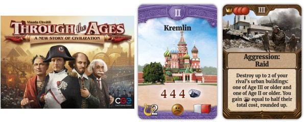 Through the Ages: A New Story of Civilization. Перерисованная и слегка улучшенная версия замечательной Through the Ages. Надеюсь, что новое издание благоприятно отразится на времени партии и упростит муторные подсчёты. Иллюстрации шикарные, благодаря им играть будет не только интересно, но и приятно. Карточные цивилизации – моя слабость, так что беру!