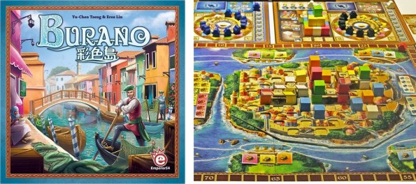 Burano. Понравилась оригинальная механика. Участникам предстоит облагораживать одноимённый остров: строить дома, мастерские и рыболовецкие хижины. У каждого игрока на планшете имеется пирамида из разноцветных кубиков-зданий. Цвет кубика обозначает тип действия. Снимая верхние кубы и совершая соответствующие действия, игрок не только открывает доступ к новым возможностям, но и зарабатывает репутацию за развитие инфраструктуры острова.