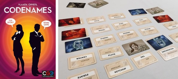 Codenames. Патигейм от Влаады Хватила. Для меня этого уже достаточно, чтобы склониться к покупке. Отзывы тоже многообещающие. Участники делятся на команды, а на стол выкладываются карточки с рандомными словами. Половина слов предназначена для одной команды, другая – для второй. Но это знают только ведущие. Они стараются придумать подсказки таким образом, чтобы их команда отгадала как можно больше своих слов, избегая чужие и специальные карты убийцы.
