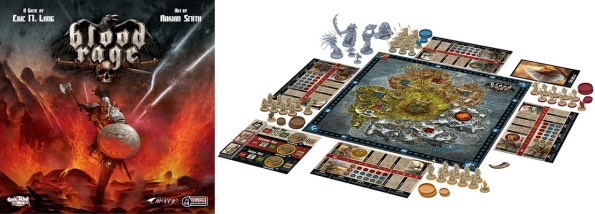Blood Rage. Не совсем мой тип игр, но восторженные отзывы уважаемых заморских обзорщиков заставили присмотреться поближе. Сражающиеся между собой кланы викингов, классные миниатюры, различные квесты, возможность прокачивать свои отряды и заполучить поддержку легендарных мифических существ – всё это звучит здорово. Надеюсь, что игра будет в духе Nexus Ops, пускай и немного усложнённой.