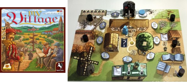 My Village. Что ж, Инка и Маркус Бранд решили выпустить Летопись на кубиках. Игра эксплуатирует название и отчасти механику времени, но, судя по правилам, является не упрощённой версией Village, а вполне самобытной игрой. Тут необходимо расширять свою деревушку, пристраивая тайлы зданий с дополнительными свойствами. Основное отличие заключается в том, что действия определяются суммой значений на двух выбранных игроком кубиках, доступных в общем резерве.
