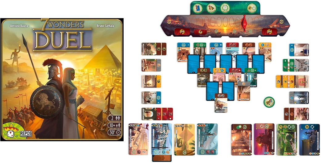 7 Wonders: Duel. Тут вообще не пришлось думать. От обычных 7 Чудес я в восторге, а тут, что называется, счастье привалило – самостоятельная дуэльная версия! Обнадёживает новый способ драфта, а также возможность досрочно выиграть через войны или науку. Вообще, отличий предостаточно, но все они только разжигают интерес.