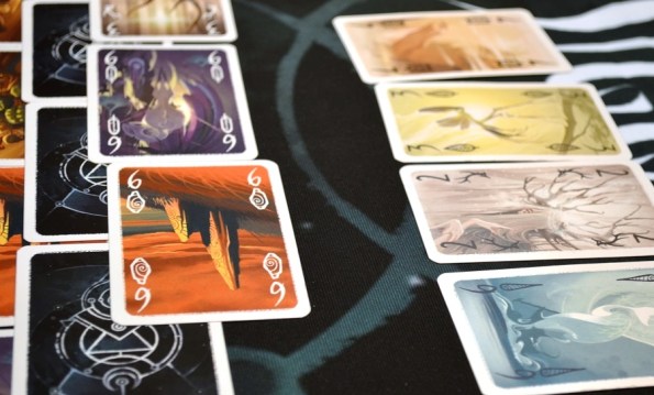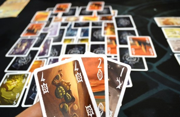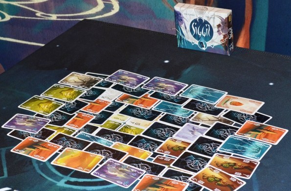 Siggil. Медитативная карточная игрушка на сбор сетов. Разложив таким вот хитрым способом карты, игроки приступают к драфту. Брать, разумеется, можно только открытые карточки.