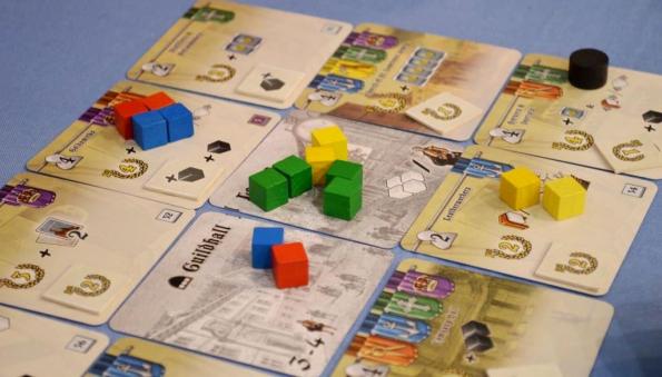 Guilds of London. Новинка от автора Snowdonia. Отдалённо напомнила Sons of Anarchy, только в средневековом сеттинге. Тоже боремся за влияние на локациях, которых по ходу партии становится всё больше.