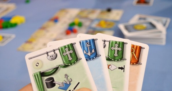 За вышеупомянутый ром можно перебрасывать кубики и пользоваться специальными тайлами экипажа, которые позволяют перевернуть кубик на любую грань, переместить его на другое задание и т.д.