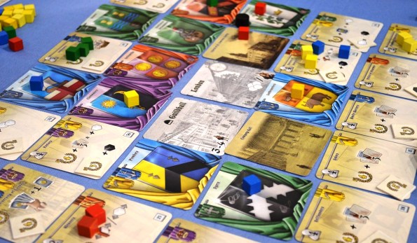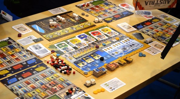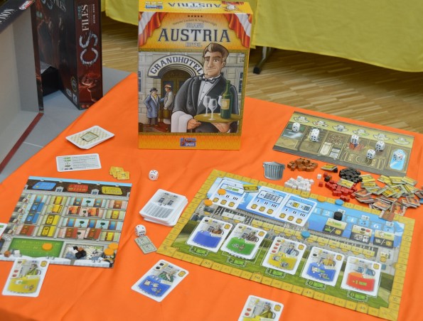 Grand Austria Hotel. Игроки стараются сделать из своих кафешек процветающие отели. Помогают им в этом кубики, которые бросаются в начале каждого раунда и распределяются по специальному планшету согласно выпавшим граням. В свой ход игрок берёт один кубик и выполняет соответствующее действие столько раз, сколько кубиков находится в колонке (вместе со взятым).