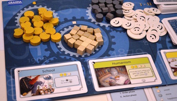 В общем, игроки следят, какие карты выходят, стараются угадать ход мыслей соперников (что довольно трудно) и попутно за ресурсы покупают так называемые карточки идей с полезными свойствами и победными очками.
