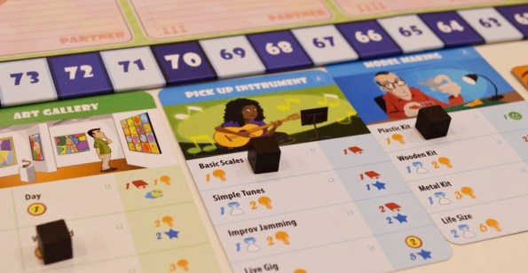 Отличие в том, что тут локации приносят бонусы, как только на них наберётся определённое число кубиков, не важно чьих. В этом случае уникальная награда полагается первому и второму месту. Обычно это очки, добор карточек целей или специальные чёрные кубики (о них ниже).