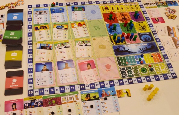 The Pursuit of Happiness. Этакая игра в жизнь. Посредством размещения фишек времени (рабочих) устраиваемся на работу, развлекаемся, женимся, заводим детишек, уходим на пенсию и умираем.