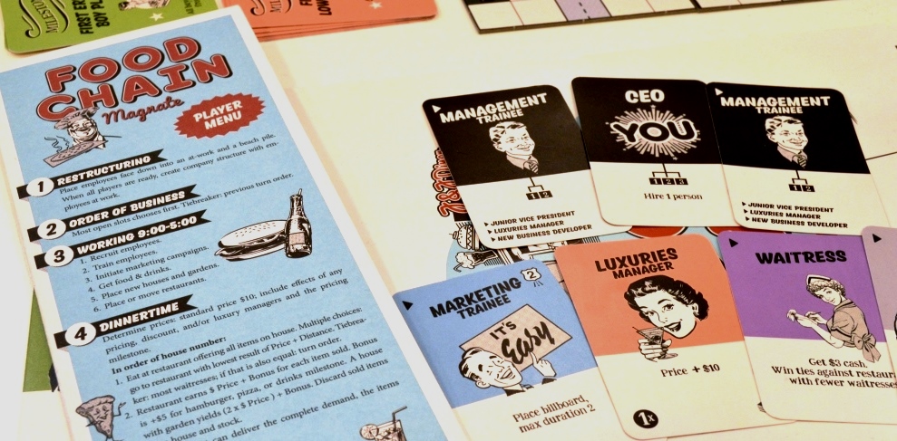 Food Chain Magnate. Игроки с нуля развивают бизнес по производству быстрого питания. Начиная с исполнительного директора, они нанимают специалистов по отбору персонала, маркетологов, поваров, водителей, менеджеров. Задача – наладить идеальную и эластичную структуру, чтобы можно было быстро реагировать на изменчивый спрос покупателей и выходки конкурентов.