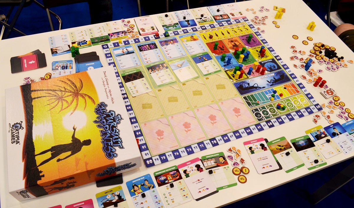 The Pursuit of Happiness. Этакая игра в жизнь. Посредством размещения фишек времени (рабочих) устраиваемся на работу, развлекаемся, женимся, заводим детишек, уходим на пенсию и умираем.