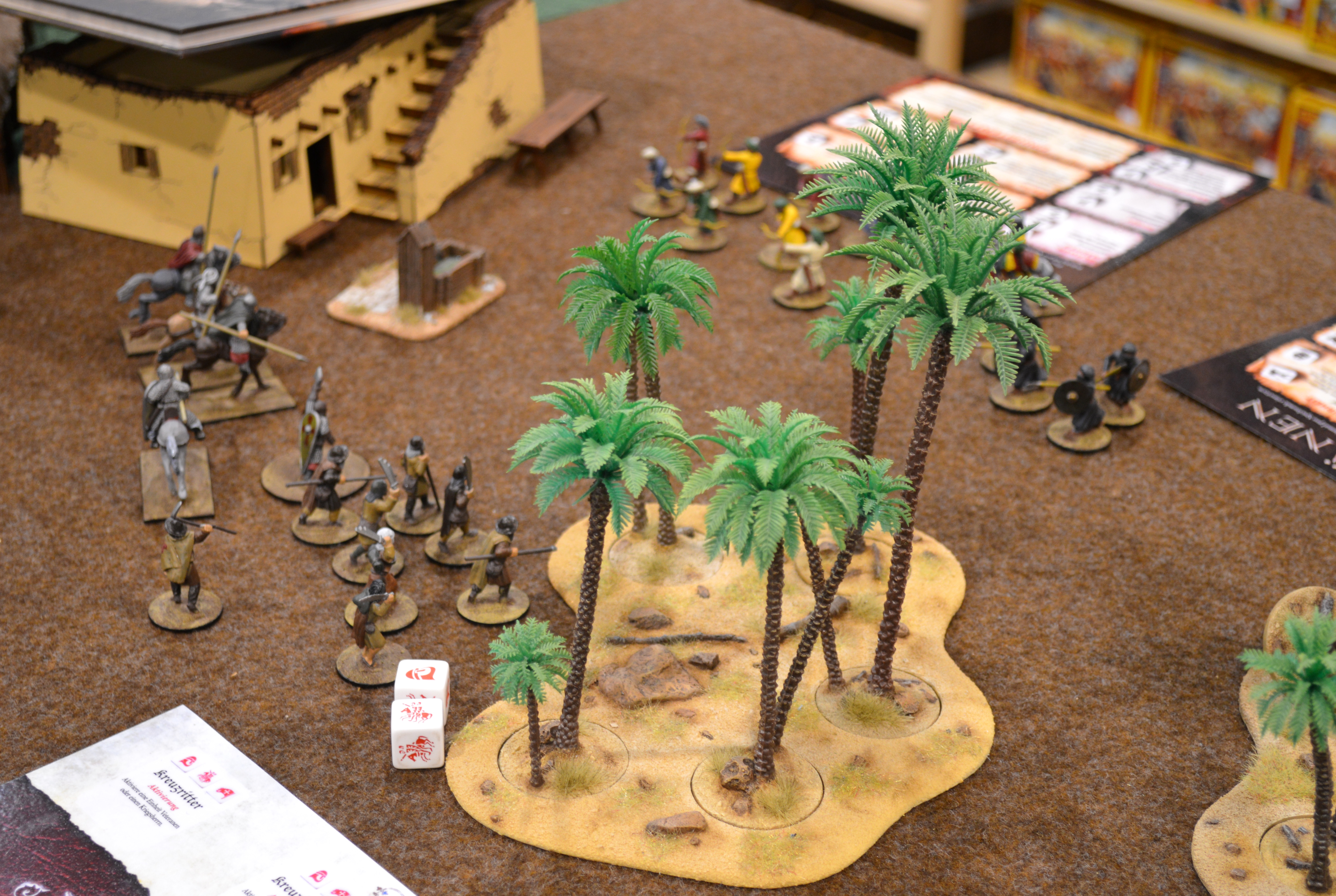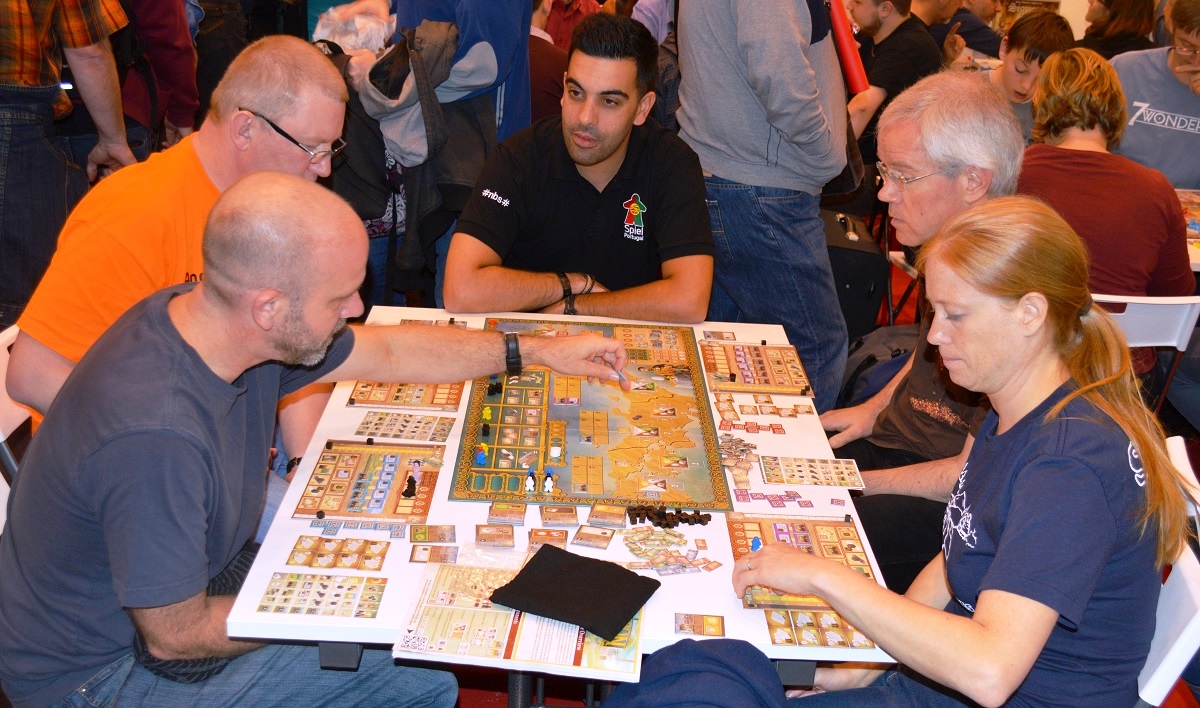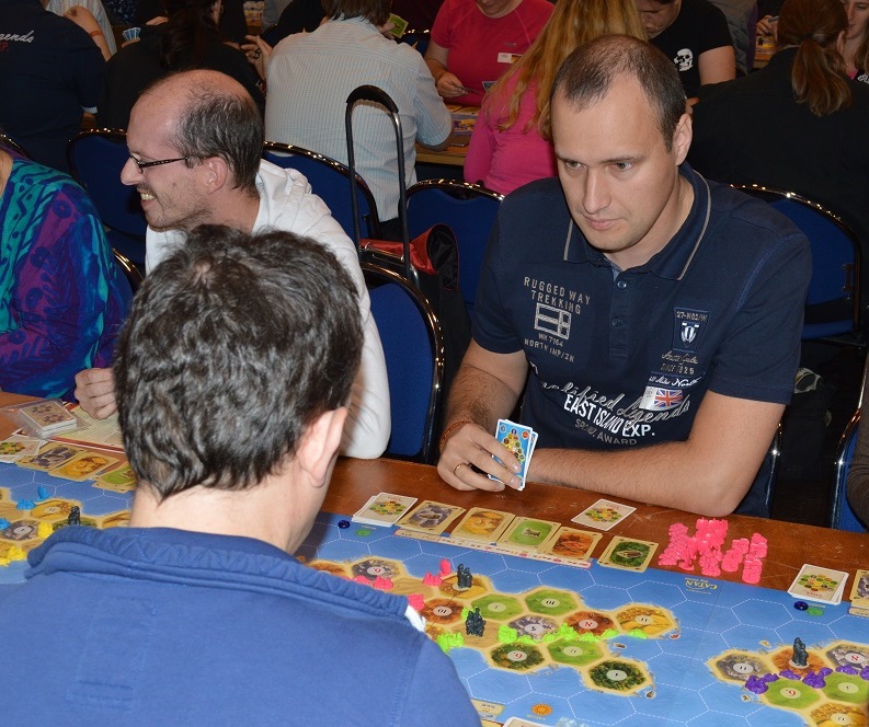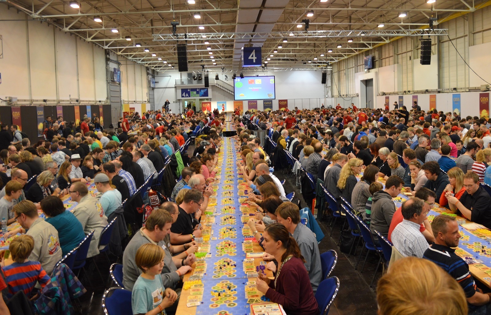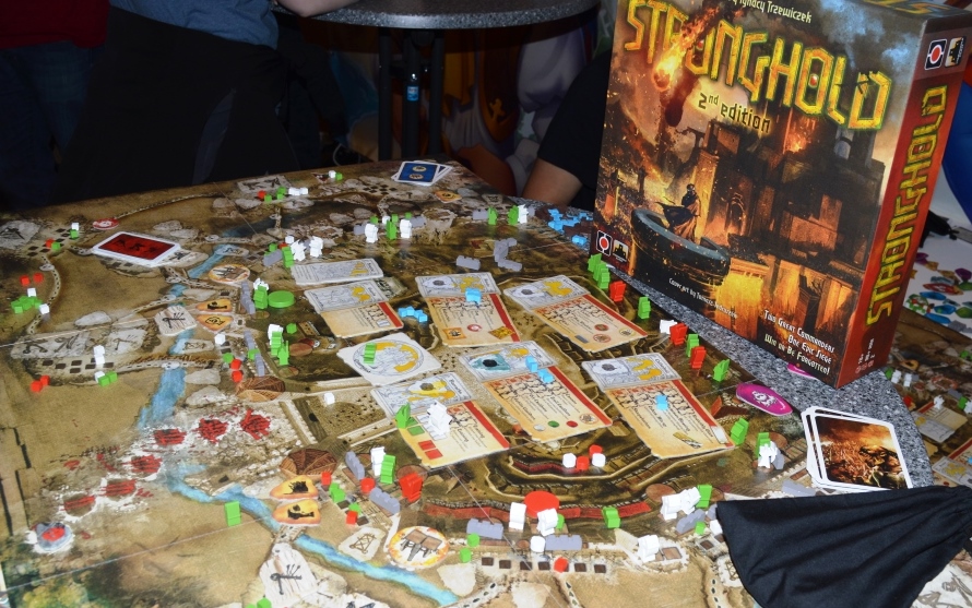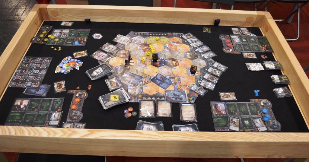 Грандиозное зрелище. Множество дуэльных полей соединены друг с другом так, что ты можешь отстраиваться и к соседям. На общем экране бросается кубик, после чего у всех есть минута на ход. У нас друг участвовал, остался доволен. Ещё бы, получил целый мешок промок. Правда, участие обошлось в 7 евро.