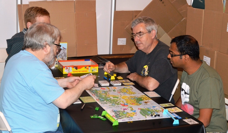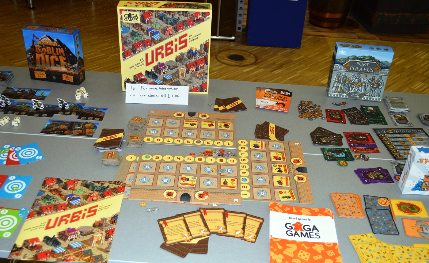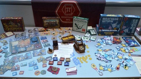 Игры от GaGaGames. Хотел попробовать Urbis, но не нашёл того, кто бы нам её объяснил. Кстати, на стенде можно было получить халявную игру, бросив на четырёх кубиках одинаковые значения. Девушка из Гаги сказала, что где-то десятерым это удалось.