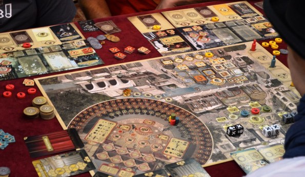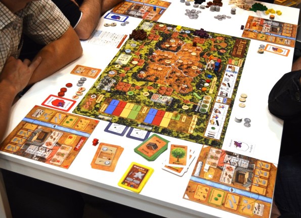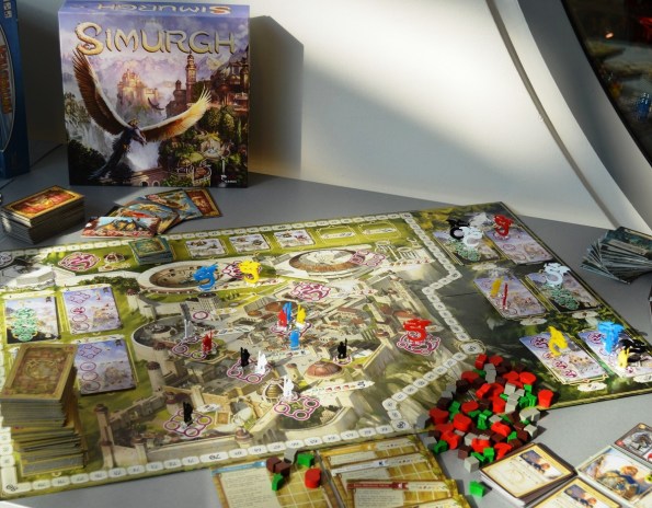 К сожалению, стол с игрой был всего один, и там всё время кто-то сидел! Игра заинтересовала темой противостояния иллюзионистов. Надеюсь, что она получилась не слишком перегруженной, механик там намешано будь здоров.