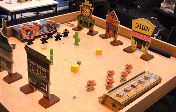 Довольно обширно пиарили Flick ’em Up! – новую щелчковую забаву про ковбоев. Мне очень нравится, как тут продуманы нюансы: можно прятаться в зданиях, скакать на лошади, делать прицельные выстрелы, вызывать на дуэль и т.д. И всё это не просто красивые слова, в игре действительно присутствуют специальные правила и вспомогательные компоненты, которые заставляют игроков погрузиться в разборки Дикого запада. Разумеется, игра по большей части для детей.