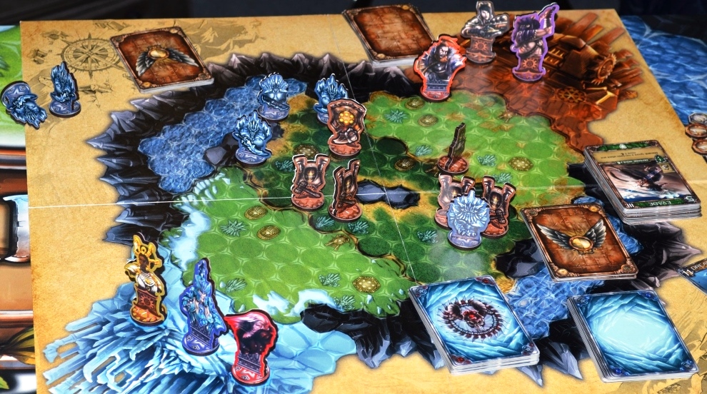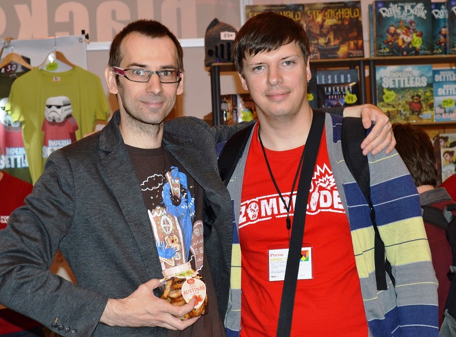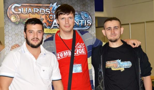 И неожиданная встреча с ребятами из Латвии, которые в авторском уголке представляли свою игру Guards of Atlantis (воплощение компьютерных игр типа MOBA). Дуэльные сражения с миниатюрами, основанные на розыгрыше карт действий. Скоро на Кикстартере!