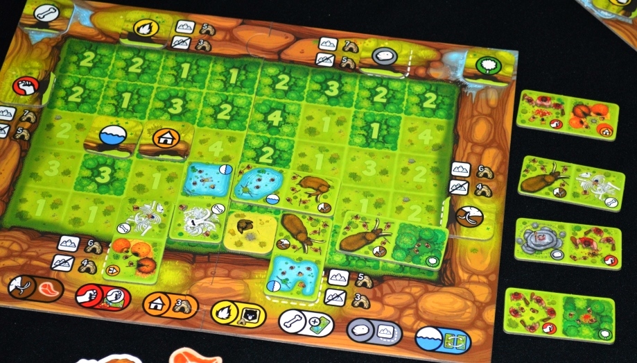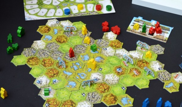 Фишка в том, что тайлы состоят сразу из трёх гексов, а успешно присоединённые типы местности приносят монеты. В остальном очень похоже: стараемся закончить территории и получить за них победные очки. Рабочие возвращаются по тем же правилам. Монеты нужны, чтобы ставить дополнительных миплов и претендовать на чужие территории.