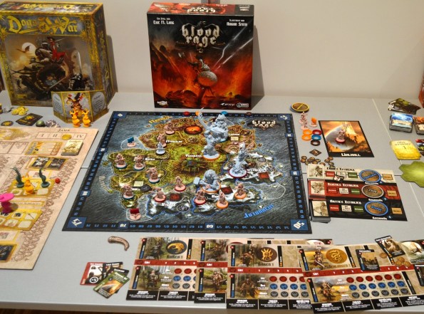 Blood Rage не продавался. Давеча посмотрел видео-обзор – игра напомнила немного усложнённый Nexus Ops (очки за сражения, выполнение заданий, вкусный центр), только с драфтом карт бонусов.