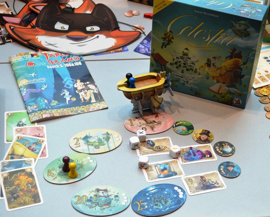 Переиздание старой игры Cloud 9 под новым названием Celestia. Передвигаясь на воздушном корабле, участники экспедиции посещают различные города с целью нахапать побольше сокровищ. В основе механика “испытай удачу”. Каждый раунд игроки решают: выйти ли из корабля сейчас и получить гарантированные очки, либо рискнуть, понадеявшись на капитана, и отправиться дальше к более весомой награде. Именно капитану перед каждой остановкой необходимо пройти испытание, генерируемое кубиками.