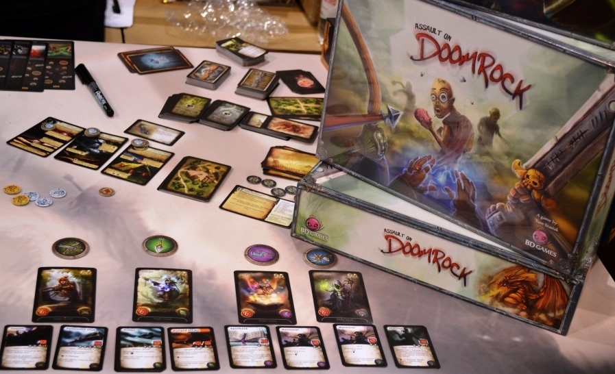 Кикстартерный Assault on Doomrock обзавёлся дополнением Doompocalypse. Значит, это кому-то нужно. Меня видео-обзор как-то не впечатлил. А именно, сомнительной показалась первая часть, где ты долгое время вслепую бродишь по случайным локациям в поисках полезного лута, и только потом отправляешься в приключение. Приключение же представляет собой колоду опять же случайных монстров, которых нужно бить, активируя кубиками различные свойства, оружие и заклинания.
