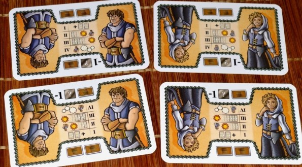 Помощники. Чтобы нанять помощника, игроку нужно собрать перед собой здания определённых цветов, а также заплатить монеты, указанные в верхнем левом углу карты. Помощник работает не так продуктивно, как мастер: он требует все ресурсы и всегда производит только один товар. У игрока может быть максимум два помощника.