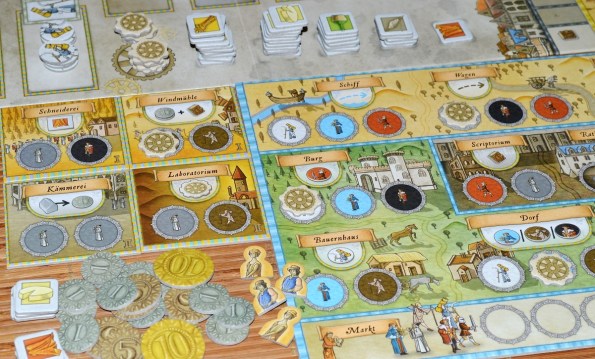 Партии у нас проходят на одном дыхании, настолько погружаешься во всё это планирование. Да и сама по себе игра не долгая, на двоих – минут сорок, а максимальным составом – часа полтора. Способствует хорошему темпу и фаза распределения жетончиков, в которой все действуют одновременно. Так что, на мой взгляд, Orléans хорош любым составом, только на двоих мало конкуренции на карте. А вот при игре втроём-вчетвером нужно неприлично много места.