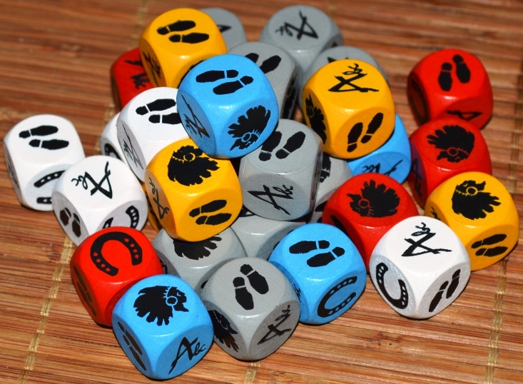 В принципе, и все правила. Своевременно пополняя запас кубиков, игроки стараются как можно быстрее выкладывать нужные грани, чтобы прикупить полезные карты племён и преодолеть побольше маршрутов. Партия заканчивается, как только опустеет колода открытий/племён. Помимо карт открытий с победными очками и символами животных (чем больше разных символов, тем лучше), очки присуждаются за лидерство по значкам вигвамов (они встречаются и на картах племён, и на картах открытий).