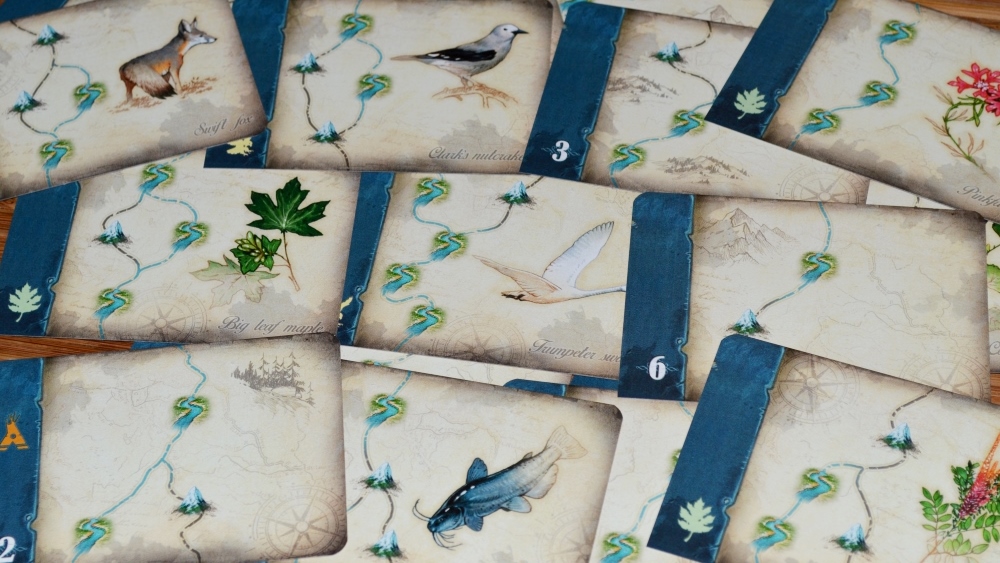Каждая карточка открытия представляет собой маршрут экспедиции, состоящий из вереницы речных и горных участков. Проходить её нужно строго снизу-вверх, а полученные с помощью кубиков символы рек и гор разделять нельзя, их следует применять “комплектом”. Как только игрок выполняет текущую карту открытия, он тут же выбирает себе новую среди трёх доступных.