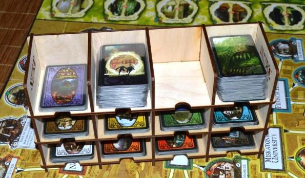 Тест держатели прошли на ура. Если обычно для больших колод к столу мы приставляли стул, то теперь в этом не было необходимости. С нижних этажей карты тоже доставались без проблем. Короче, мы были довольны. А я ещё был рад, что подставки не пришлось разбирать, они и так поместились в нашу здоровенную деревянную коробку, специально сколоченную под Аркхэм со всеми дополнениями.