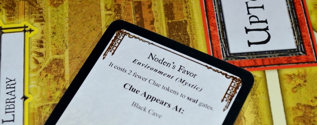 Дальше – больше. Нырнув в портал, Глория тут же обнаруживает жизненно важный документ, за что получает ещё два зелёных жетона. А в следующем раунде Аркхэм накрывает мистическая обстановка, позволяющая запечатывать врата, тратя на 2 улики меньше. В общем, запасов “клюшек” нам хватило с лихвой.