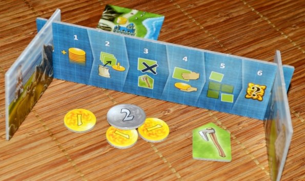 Правила игры непозволительно просты и объясняются буквально за пару минут. Каждому участнику достаётся ширма, стартовый тайл с замком и жетон топора. В центр стола помещается компактное поле с треком очков и раундов, и специальными местами, куда в начале партии выкладывается четыре случайных тайла целей.