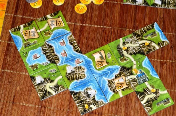 Тоже недавно попробовала эту игру – очень понравилось. Сам принцип собирать поле-паззл мне со времен Каркассона нравился, но Каркассон мне кажется каким-то суховатым и недостаточно азартным. А здесь азарта море 🙂 плюс разнообразие целей.