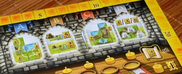 Первый такой нюанс заключается в том, что у каждого игрока свой собственный набор лотов. Окидывая взглядом доступные тайлы и королевства соперников, приходится принимать ряд щекотливых решений. Что скинуть за топор – просто ненужный тайл, или вот этот годный, на котором соперник может поднять кучу очков. Какие цены установить, чтобы не продешевить. Что оставить себе, загнув цену. Сколько монет припасти, дабы самому прикупить вкусный тайл. В общем, в этот короткий промежуток времени напряжения хоть отбавляй.