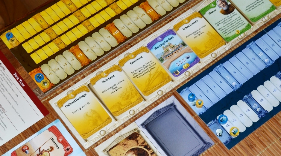 Вот так мы плавно подобрались к изменениям, которые претерпело новое издание. Первое, что сразу же бросается в глаза (помимо увеличившейся в размерах коробки), это, разумеется внешний вид. Приятно оформленные планшеты игроков, а также качественные иллюстрации лидеров, зданий и военных карт воистину вдохнули жизнь в блеклые и схематичные картинки предшественницы. И это действительно жирный плюс, ведь любая карточная цивилизация уже заведомо испытывает дефицит атмосферы.