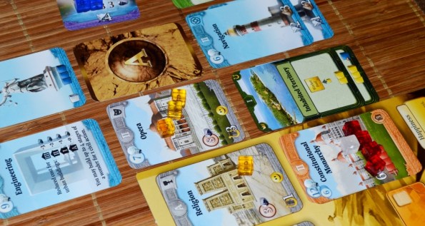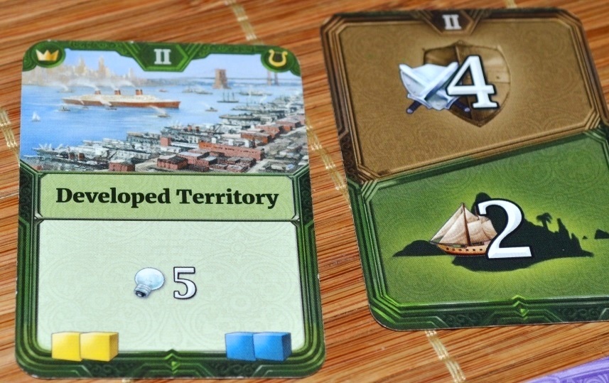 Возвращаясь к интересным механикам и идеям, хочу ещё отметить формирование стопок событий, когда игроки сами творят свою судьбу. Помощь в начале, мелкие пакости соперникам в середине, и условия, которые поощряются победными очками, в конце – всё это здорово разнообразит партии, задаёт вектор развития и добавляет интриги.