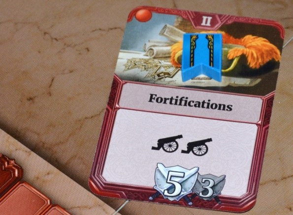 Что касается красных военных кубиков, то с их помощью можно нанимать/улучшать отряды (аналогично зданиям) и разыгрывать карты тактики, дающие бонус в виде силы за комбинацию из определённых типов войск.