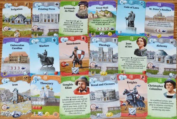 Итак, перед нами комплексная стратегия, в которой участники из крошечных и неприметных поселений возводят могущественные цивилизации. Играя карты технологий, Чудес света, лидеров, а также ввязываясь в военные конфликты, они стараются заработать победные очки не только за счёт культурного развития и военного превосходства, но и выполняя условия карт событий, которые сами и выбирают.