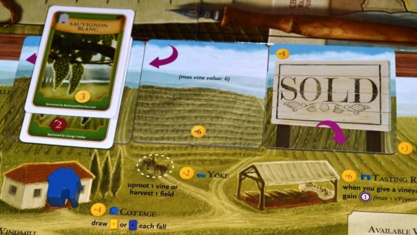 Новое игровое поле, повлекшее за собой кучу изменений. Во-первых, теперь имеем не два, а четыре сезона. Во-вторых, слегка поменялось распределение действий и добавилось несколько новых. Например, вино теперь можно продать (обменять на очки) и без карты заказа, правда, гораздо дешевле.