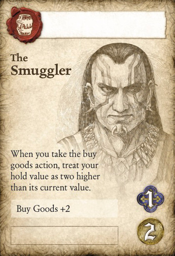 Торговцы позволяют купить до двух товаров за 3 монеты с региона, где находится корабль игрока, и погрузить их в трюмы; либо продать до двух товаров за 6 монет в регионе с символом рынка.