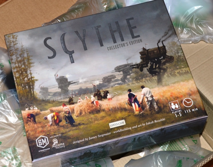 Вчера курьер FedEx привёз нам почти четыре с половиной килограмма счастья! Да, Scythe от Stonemaier Games прибыла на месяц раньше обещанного срока, что для Кикстартера, при всех его систематических задержках, небывалый случай. Но удивляться тут нечему, ведь Jamey Stegmaier, автор игры, знает, как провести идеальную кампанию, он даже книжку на эту тему написал.