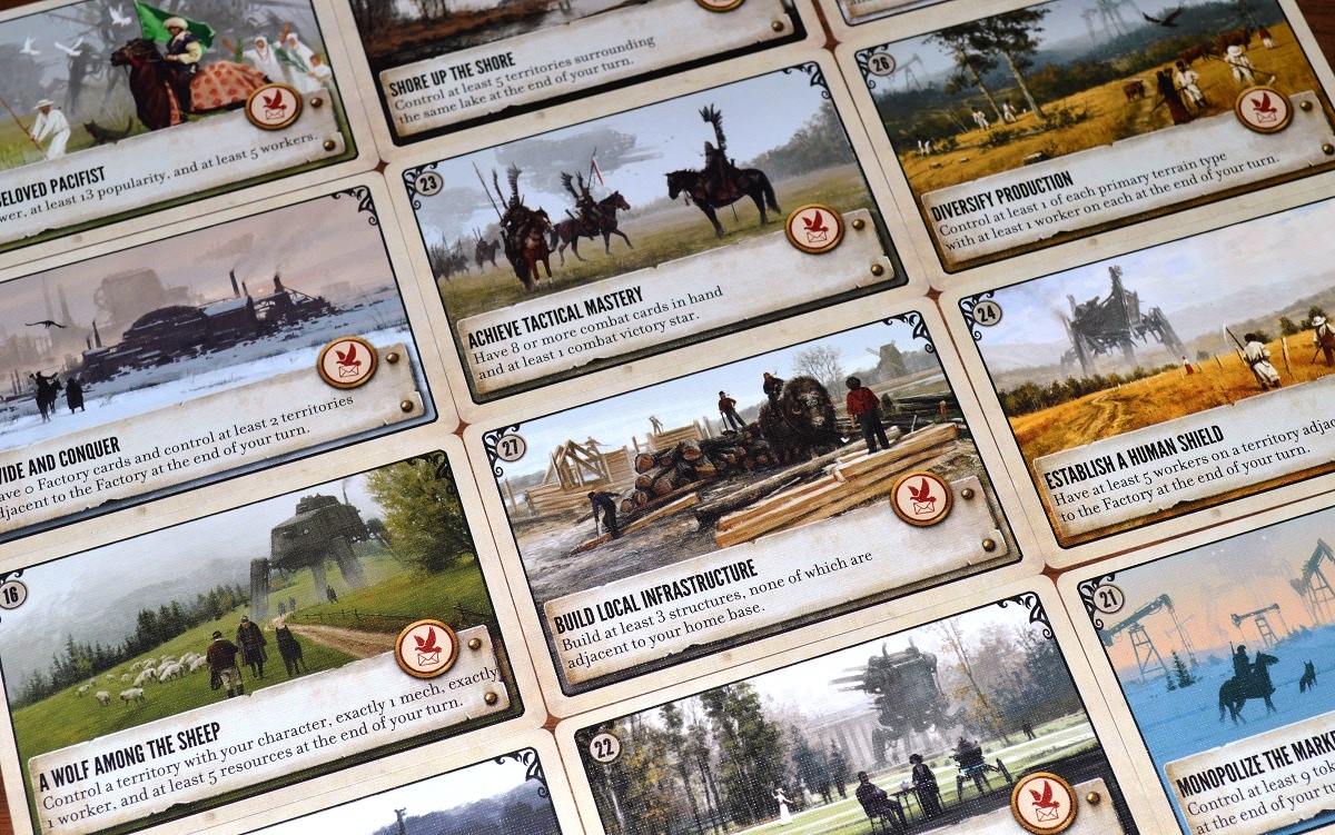 Цели выдаются в начале партии и держатся в секрете. Выполнение условия на карточке цели приближает игрока к победе.