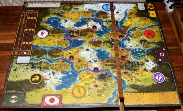 После первой партии могу сказать почти то же самое. Правда, пока сыграли на двоих только. То, что мало конфликтов, для меня в плюс, так хоть с Катей можно будет раскладывать. Для войнушки есть Blood Rage, Кемет, Нексус. Меня пока смущает реиграбельность, планшеты с действиями мало чем отличаются. Ещё хотелось бы больше встреч. Но в остальном интересно, и планировать, и оптимизировать, и следить за остальными.